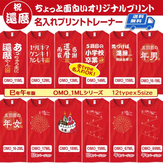 還暦 長袖 トレーナー 名入れ OMO-1MLシリーズ 巳年 午年 対応版 還暦祝い おもしろい プリント お祝い プレゼント ラッピング 赤 レッド おしゃれ サプライズ メンズ レディース 男性 女性 父 母 上司 メール便 送料無料