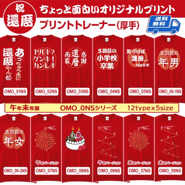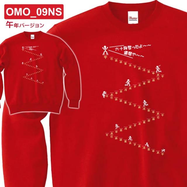 還暦 長袖 厚手 トレーナー OMO_0NSシリーズ 巳年 午年 対応版 還暦祝い おもしろい プリント お祝い プレゼント ラッピング 赤 レッド おしゃれ サプライズ メンズ レディース 男性 女性 父 母 上司 メール便 送料無料