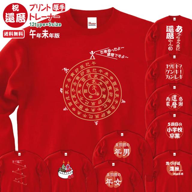 プリント トレーナー(厚手) 長袖 還暦 お祝い プレゼント Sサイズ Mサイズ Lサイズ XLサイズ 2XLサイズ