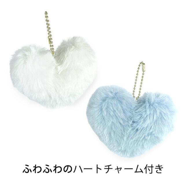 ふわふわハートのチャーム付き。