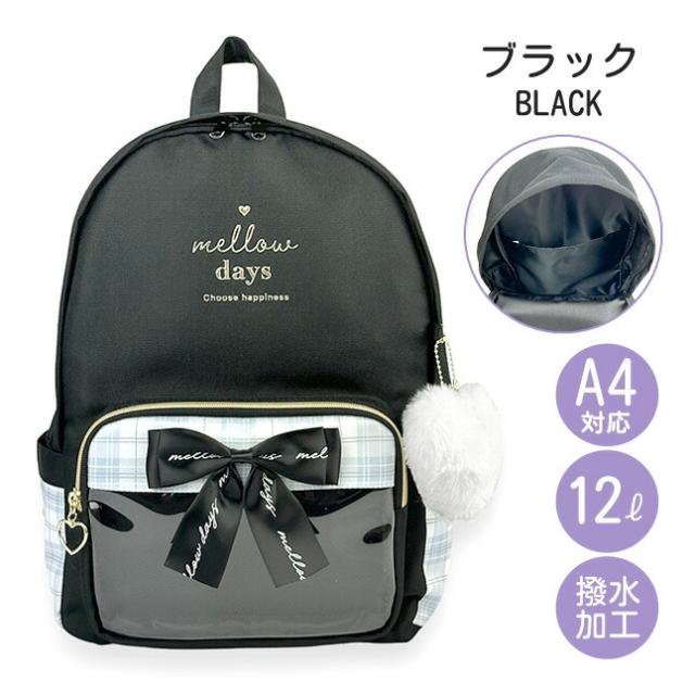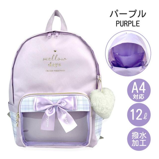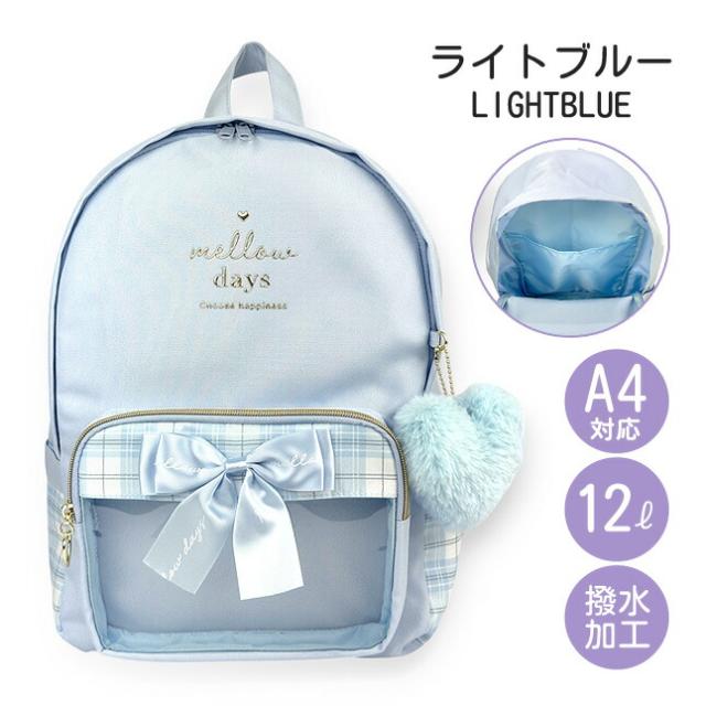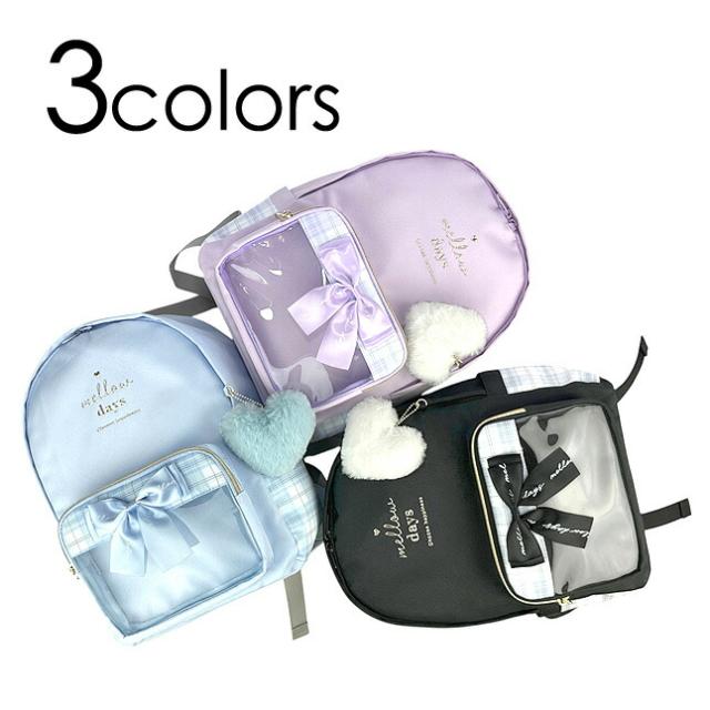 フロントの大きめリボンもとってもおしゃれなリュックサック。