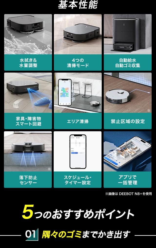 ◆ワンクリックで家全体を清掃。AIインテリジェントホスティング機能搭載