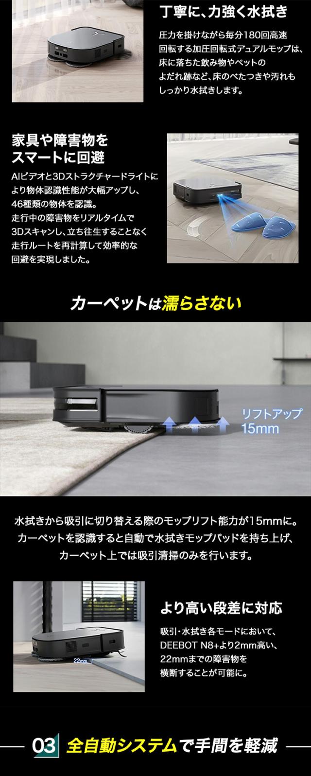 [検索用:ロボット掃除機 お掃除ロボット 水拭き 自動ゴミ収集 モップ自動洗浄 カーペットセンサー 温水洗浄 音声操作 掃除機 クリーナー ロボットクリーナー ホワイト ブラック 4589914862127 4589914862110]