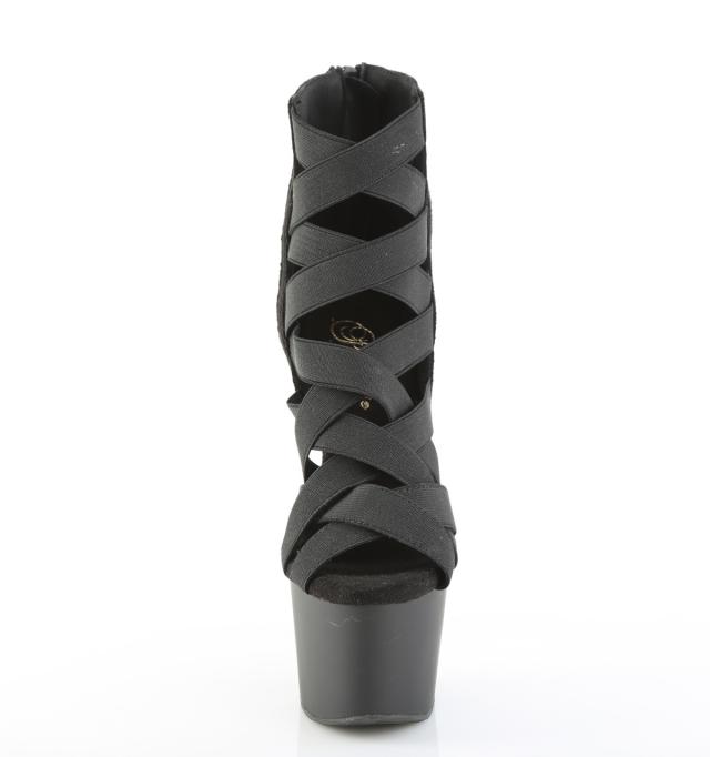 Pleaser(プリーザー) ADORE-700-24 クリスクロス ブーティサンダル バックZIP 黒 エラスティックバンド-マイクロファイバー◆取り寄せ