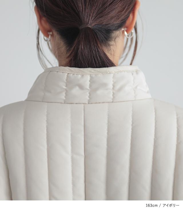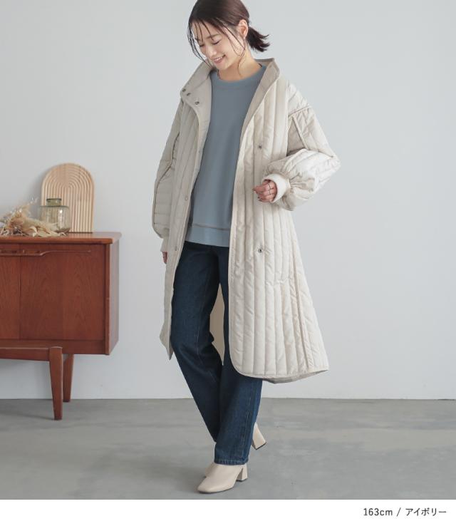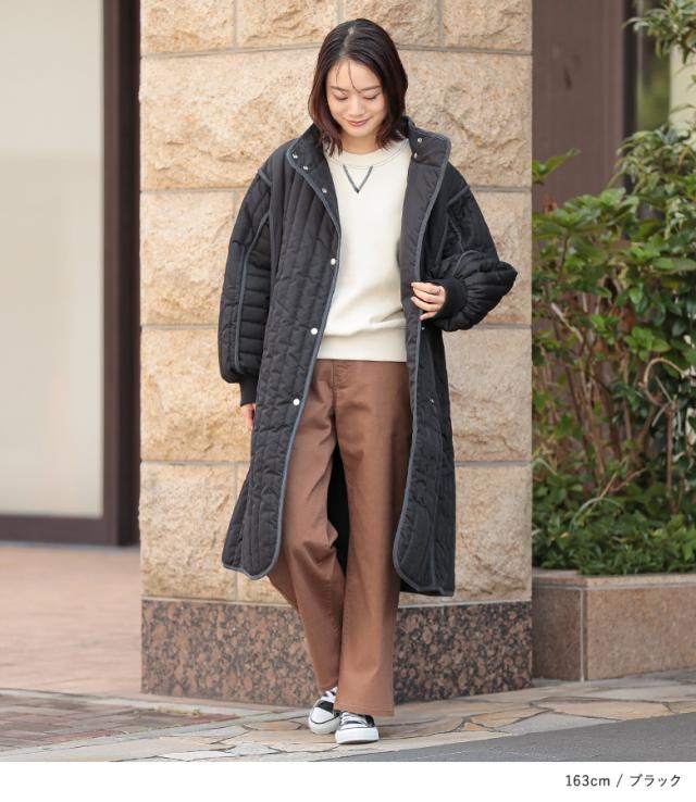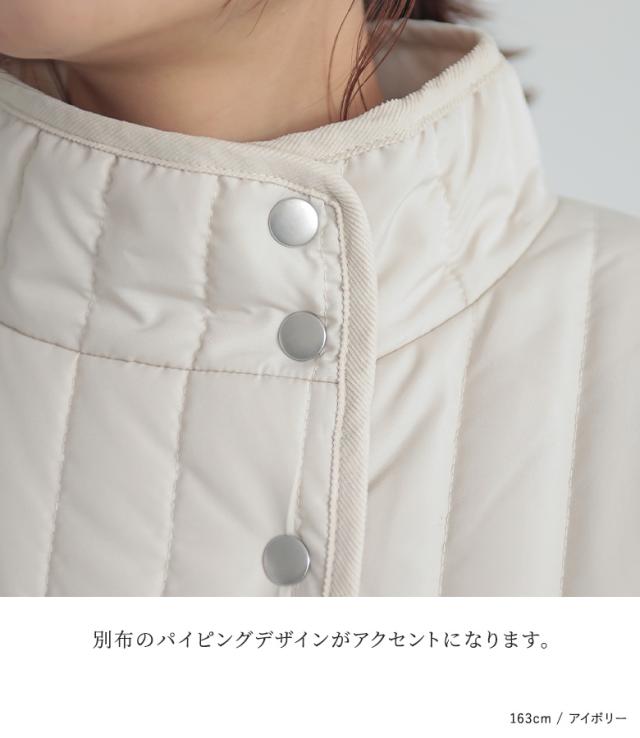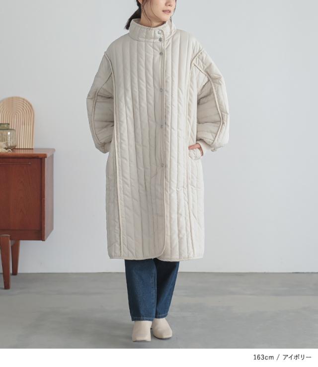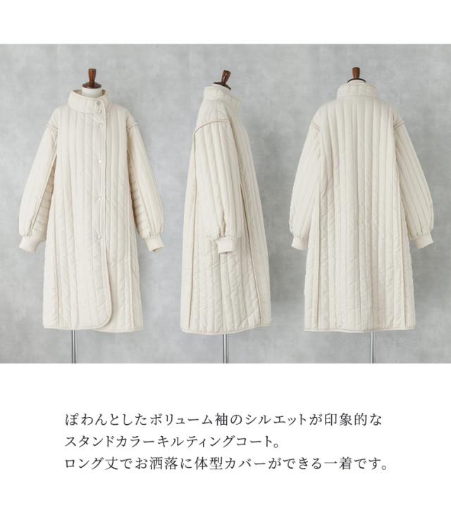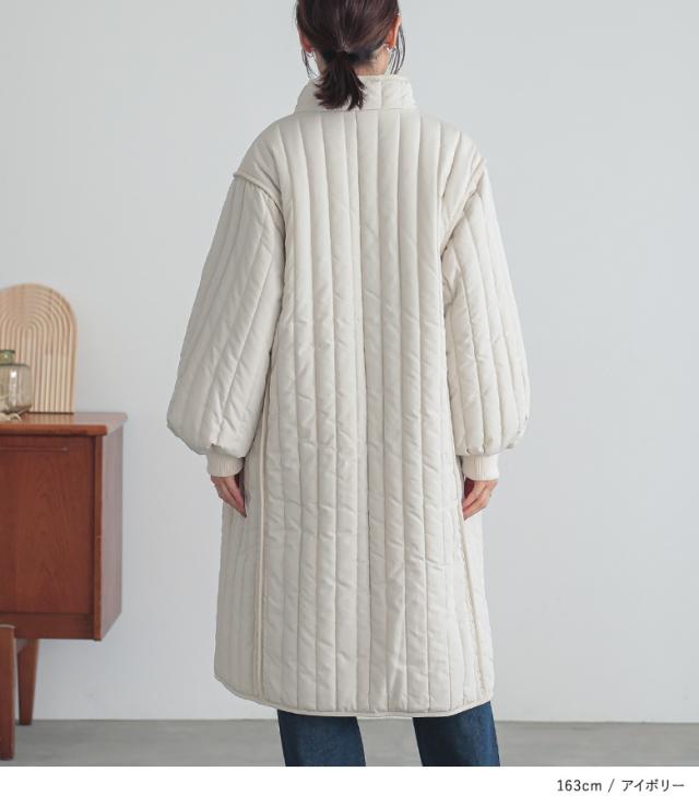 【送料無料】『キルティングスタンドコート』【メール便不可】【80】[アウター コート 中綿コート レディース ボリューム袖 キルティング あたたかい ひざ丈 膝丈 ロングコート パイピング]