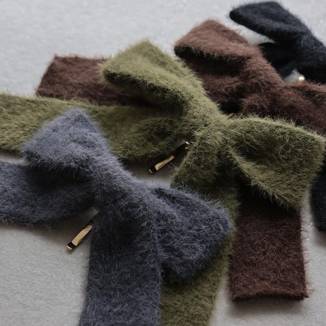 | 髪の毛をまとめたヘアゴムに差し込むだけでオシャレなアクセントを加えてくれるポニーフックです。 温かみのあるモヘアニット生地のリボンモチーフが可愛い印象をプラス。 秋冬コーデになじむシックなカラーが甘すぎず、大人コーデにもピッタリです。 | |