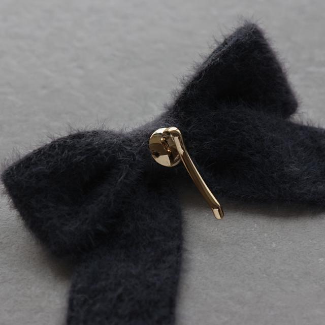 温かみのあるモヘアニット生地のリボンモチーフが可愛い印象をプラス。
