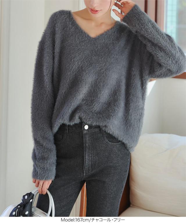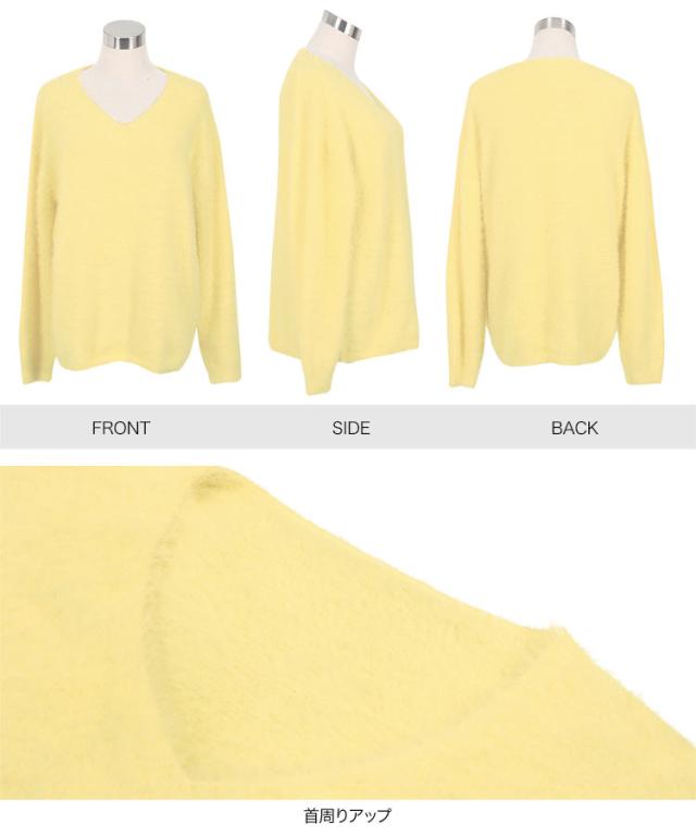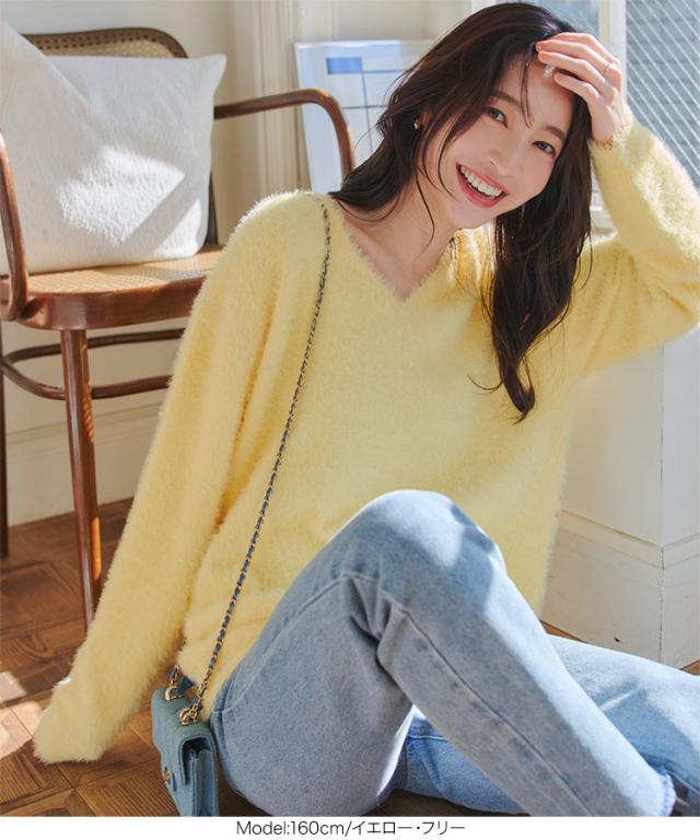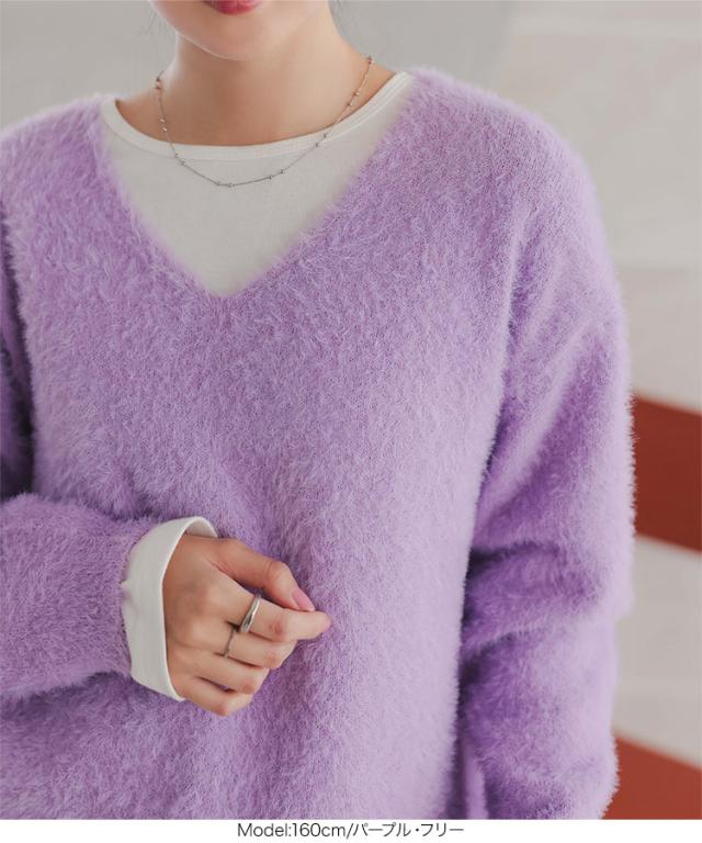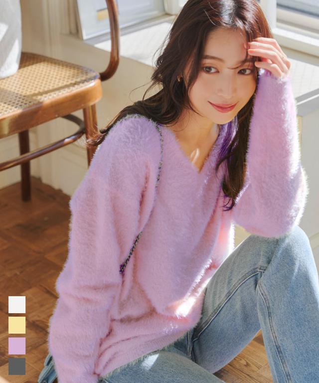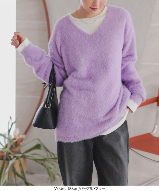 春新作 シャギーニットトップス N1140 入荷済 レディース 20代 30代 40代 Vネックニット 長袖 ふわふわ 無地 イエロー パープル Vチャコール グレー オフホワイト 黄色 紫 灰色 レイヤード 重ね着 大人 おとな 高見え 上品 フェミニン カ
