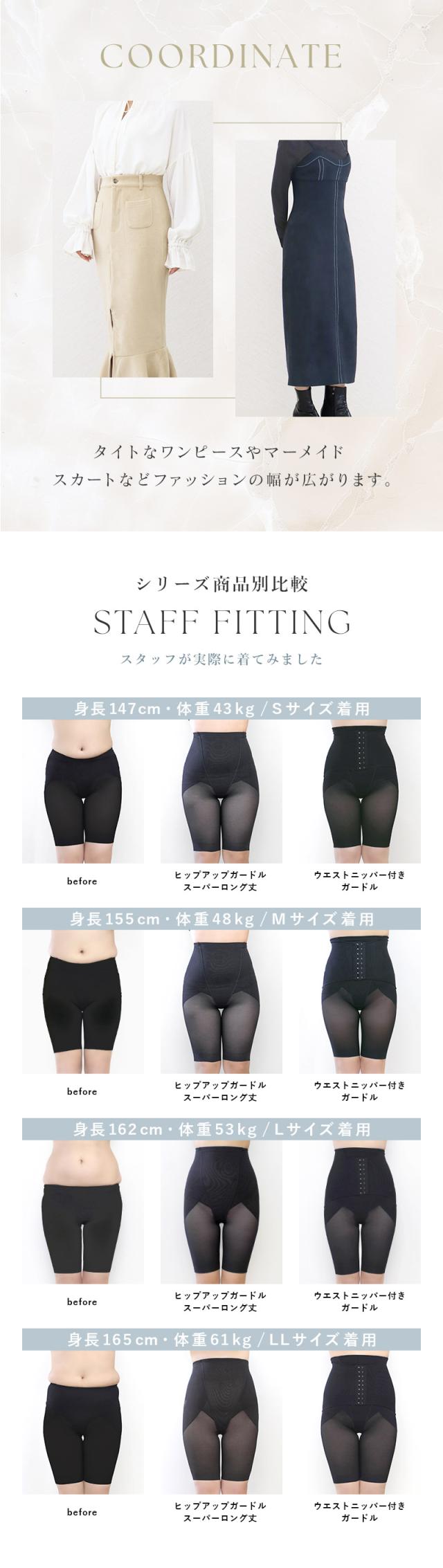 『美尻』『補正』など、忙しい女性の毎日を快適にサポート。 産後の体型戻しやエイジングケア、骨盤矯正をしたい方にも最適。 履くだけでお腹〜太ももまでを手軽に補正。 ヒップアップ機能と着け心地がUPしたガードルに、 ウエストニッパーが一体型になったアイテム。 ぽっこりお腹にお悩みの方もボトムの下に忍ばせるだけで、 スッキリ着痩せ&くびれメイクが叶います。 通常のガードルよりも更に高い補正力をお求めの方にオススメです。 「スタイルアップを叶える」3つのポイント ■習慣化できる着心地 骨盤ケアは毎日続けることが大切。 補正下着は苦しすぎて結局続かない…という方にもオススメ! ウエストニッパー部分は、通気性のよい薄手素材&ワイヤー不使用で、 「しっかり補正×苦しくない着心地」を実現し、365日サポート。 ■ふっくら上向きヒップをメイク お尻の下からサイドにかけてパワーネットで引き上げます。 中央部分は弱圧のため、丸みを潰さず高さのあるヒップに。 ■簡単にくびれメイク ウエスト周りをしっかり引き締めるウエストニッパー付きなので、 これ1枚で綺麗なくびれメイクが叶います。 細かなサイジングが可能な8段5列のホックで、お好みの補正感に調整可能。 | |