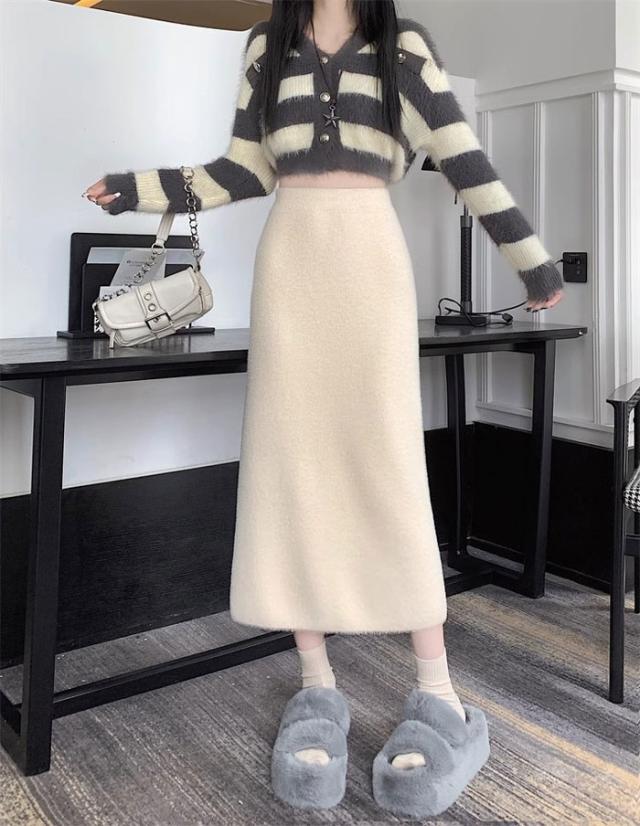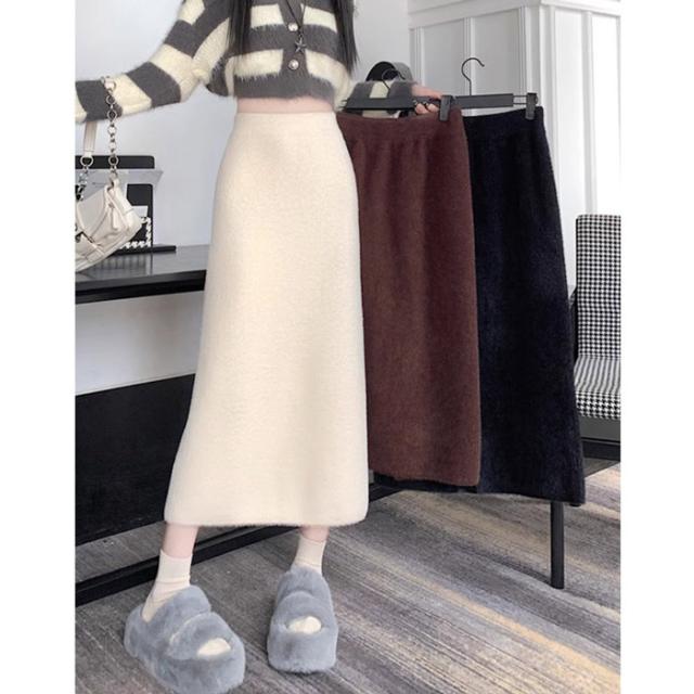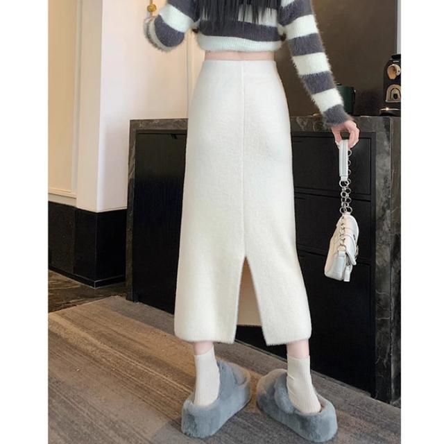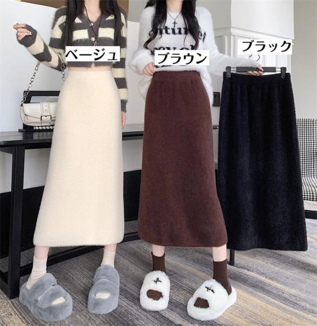 スカート ロング 秋冬 スリット入りスカート フリーサイズ ニットスカート タイト ボトムス オフィス 通勤 ナロースカート ストレッチ ロング丈 リブニット 大きいサイズ dy018x0x0x7xq dy018x0