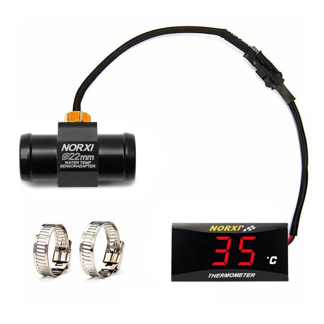 NORXI バイク用 水温計 デジタル 防水 高温警告機能 12V ユニバーサル コンパクト 温度計 温度アダプター付き 簡単設置 超実用(22mm, 赤)