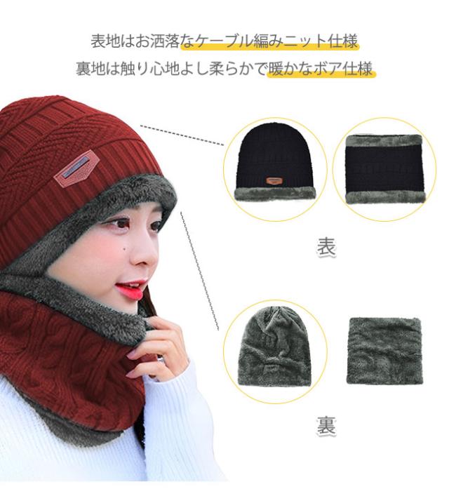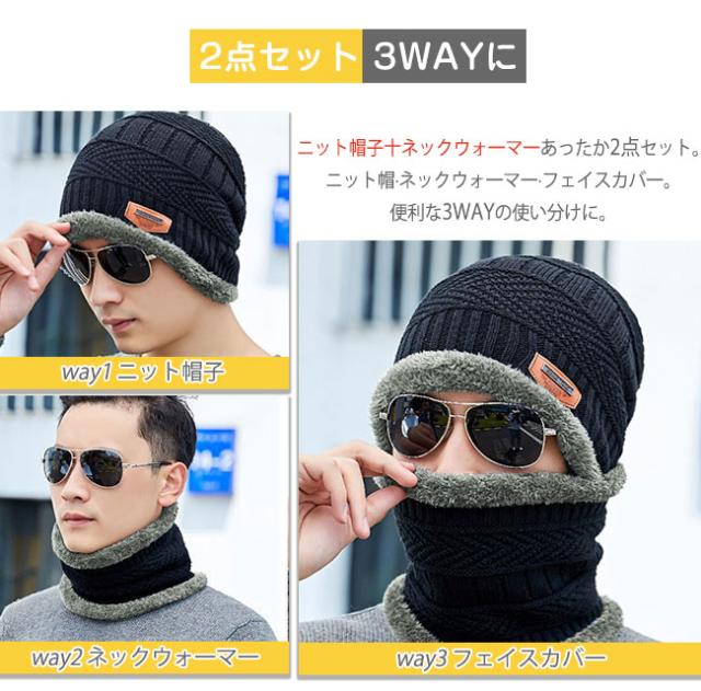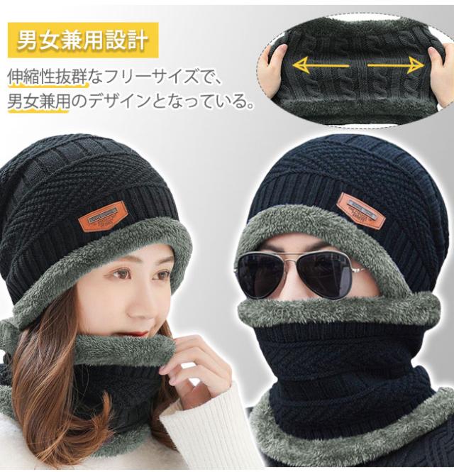 ネックウォーマー ニット帽 2点セット フェイスマスク 帽子 防寒 スキー メンズ レディース 裏起毛 秋冬 キャップ 男女兼用 冬新作