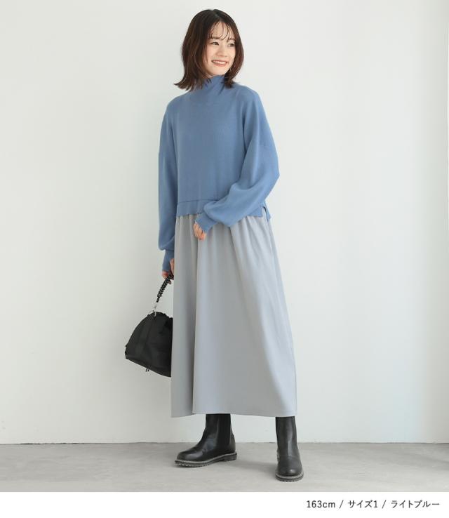 ワンピース 長袖 レディース ニットワンピース ロング丈 異素材 ぽわん袖 フレア ゆったり タートルネック 【TP】 リブニット ざっくりニット ロングワンピース マキシワンピース ニットワンピ n'OrLABEL ノア—ルレーベル 大人女子 大人可愛い お洒落可愛い 大人カジュアル ベーシック ニュアンス ラフ エフォートレス オフィスカジュアル ドロップショルダー Aライン ギャザー 指穴 配色 無地 異素材MIX ドッキング レイヤード 重ね着 ポケット おうちで洗える 秋 冬 カジュアル シンプル ナチュラル キレカジ フェミニン 上品 きれいめ Sサイズ Mサイズ Lサイズ LLサイズ 3Lサイズ XLサイズ ぽっちゃり 体型カバー 大きいサイズ プラスサイズ 10代 20代 30代 40代 50代 60代 女子会 オフィス 通勤 通学 お買い物 お出掛け 旅行 リゾート レジャー おしゃれ お洒落 トレンド 流行 ママ 母 母親 osharewalker オシャレウォーカー おしゃれうぉーかー ベージュ ブルー 青 水色 ライトブルー ブラック 黒 バイカラー 春色ニット[ID]11dm0p5[n'OrLABELタートルネックドッキングニットワンピース]