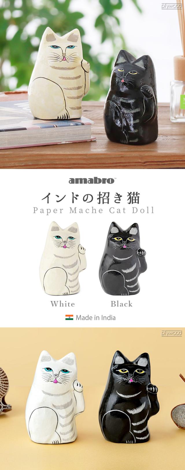 まねきねこ 招き猫 置物 左手 まねき猫 黒 おしゃれ かわいい amabro インドの招き猫 2033 2034 アマブロ 人を招く 開運 商売繁盛 千客万来 縁起物 ハンドメイド manekineko 開運グッズ 雑貨 人招き 猫グッズ ねこ ネコ 玄関 インテリア