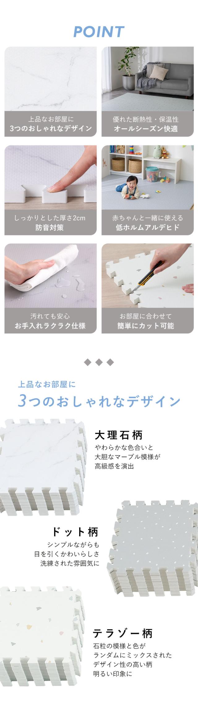 (検索用:ジョイントマット 30cm 厚手 2cm 2畳 36枚 プレイマット クッションマット 防音マット パズルマット 大理石 おしゃれ カーペット ベビー 赤ちゃん 床 アイリスオーヤマ 4967576768696 4967576768702 4967576768719)