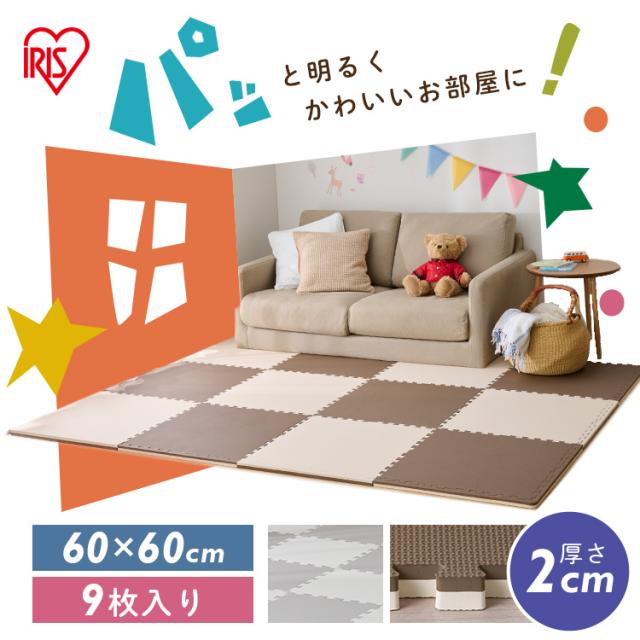 (検索用:ジョイントマット 大判 60cm 厚手 2cm 2畳 9枚 プレイマット クッションマット 防音マット パズルマット カーペット ベビー 赤ちゃん 床 アイリスオーヤマ リバーシブル 4967576768658 4967576768665)