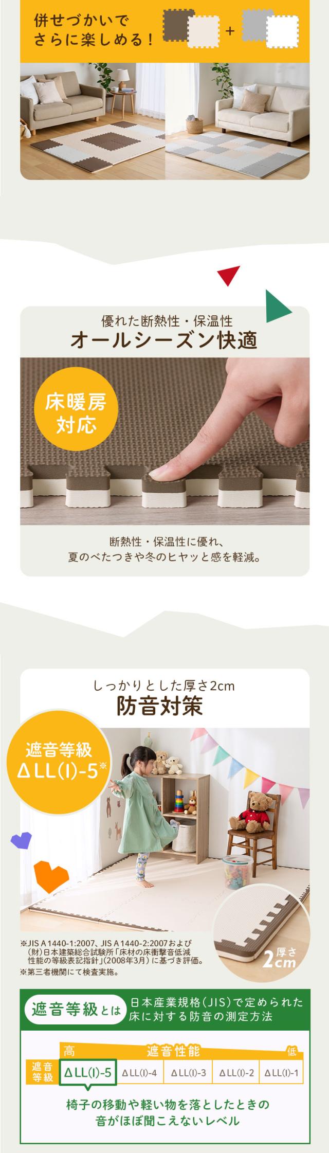 (検索用:ジョイントマット 大判 60cm 厚手 2cm 12畳 64枚 プレイマット クッションマット 防音マット パズルマット カーペット ベビー 赤ちゃん 床 アイリスオーヤマ リバーシブル 4967576768672 4967576768689)