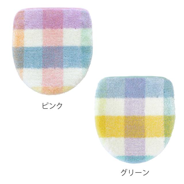蓋カバー パレット トイレフタカバー 兼用 ( 蓋 フタ カバー 吸着 U型 O型 洗浄暖房型 兼用タイプ 洗濯OK トイレタリー ふたカバー 吸着タイプ 丸洗い チェック柄 ピンク グリーン )