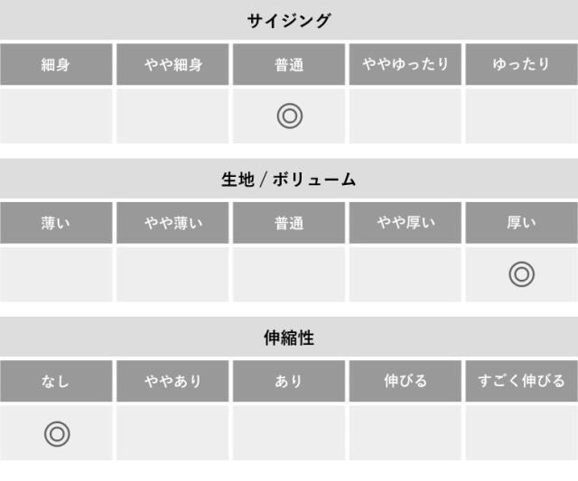 | 表地:ポリエステル90% レーヨン10% 裏地:ポリエステル100% 別布:ナイロン100% |