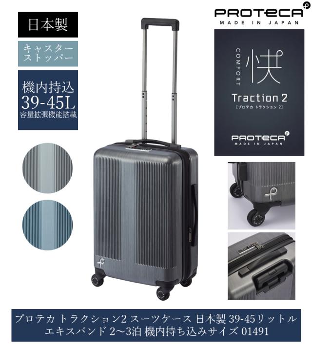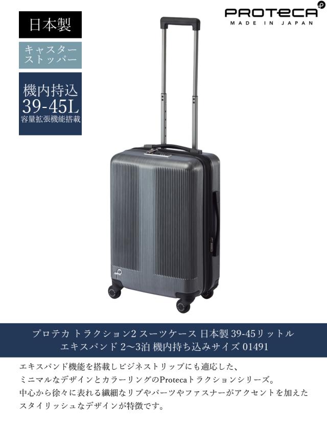 【機内持ち込み可】 エース プロテカ トラクション2 スーツケース 39/45L キャスターストッパー エキスパンダブル 日本製 01491 ( ACE PROTECA キャリーケース キャリーバッグ 容量拡張 2泊 3泊 )
