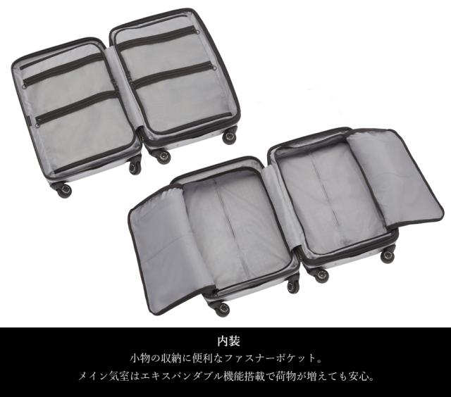 機能一覧:4輪/エキスパンド/TSダイヤルファスナーロック/キャスターストッパー/サイレントキャスター/ベアロンホイール/国内100席以上・機内持込み対応