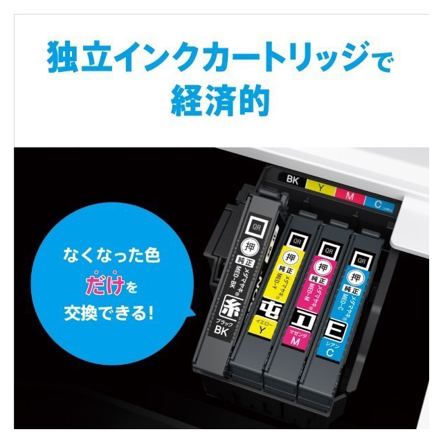 使用時:390×504×279(mm)本体重量 約4.0kg インク 4色(染料3色、顔料1色)、独立型インク 給紙容量(注)枚数は紙質により異なります。 リア(背面)トレイ:A4:最大50枚(75g/m2)、ハガキ:最大20枚 印刷方式/最高解像度 MACH方式/5,760×1,440dpi※1 用紙 単票紙-サイズ:L判、2L判、KG、スクエア、ハイビジョン、六切、A6縦〜A4縦、リーガル、レター