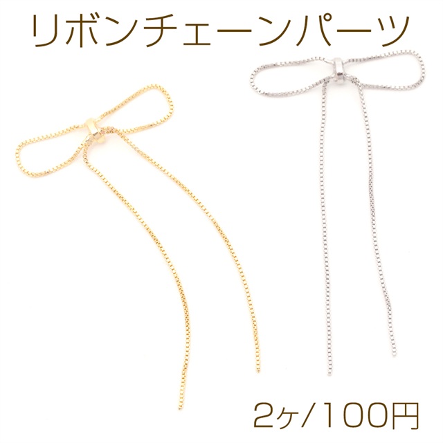 リボンチェーンパーツ ボックスチェーン リボンタッセルパーツ チェーンタッセル りぼんデコパーツ 約25×55mm(2ヶ)