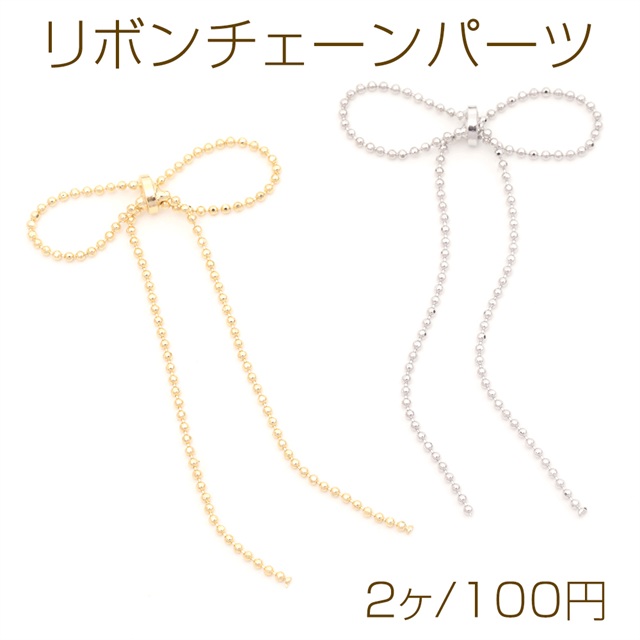 リボンチェーンパーツ ボールチェーン リボンタッセルパーツ チェーンタッセル りぼんデコパーツ 約25×55mm(2ヶ)