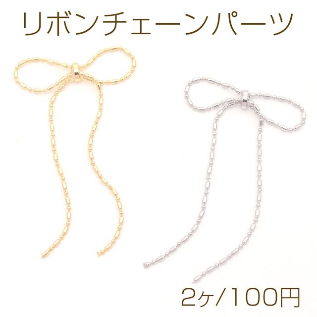 リボンチェーンパーツ ロングボールチェーン リボンタッセルパーツ チェーンタッセル りぼんデコパーツ 約25×55mm(2ヶ)