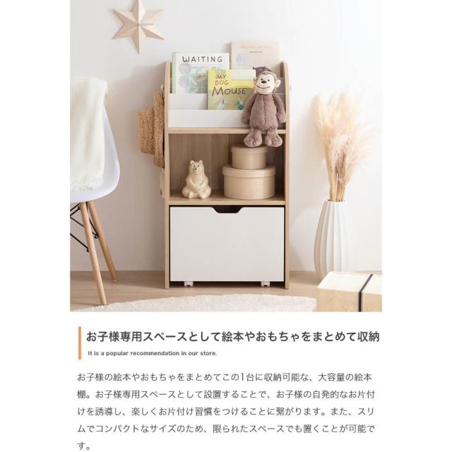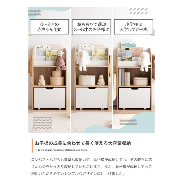 おもちゃ収納付きスリム絵本棚 キッズ収納 収納ラック