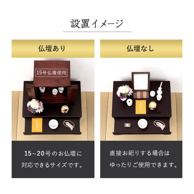 本体サイズ: 幅 60cm × 奥行 40cm × 高さ 43.5cm※15〜20号のお仏壇サイズに対応
