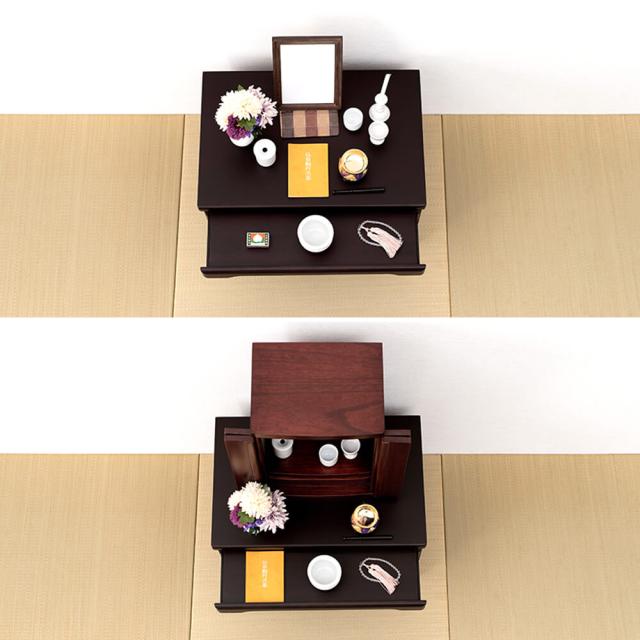 大・小、二つの引出しは、大容量で、よく使うお線香や数珠を整理して収納が出来ます。