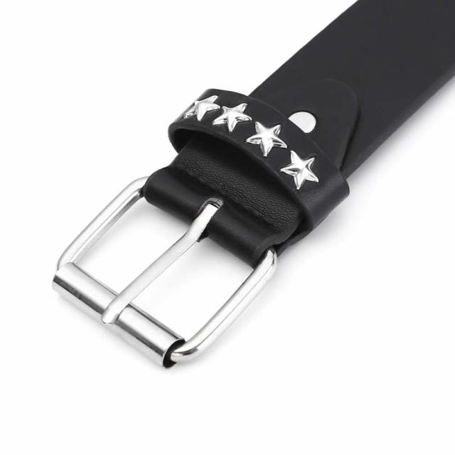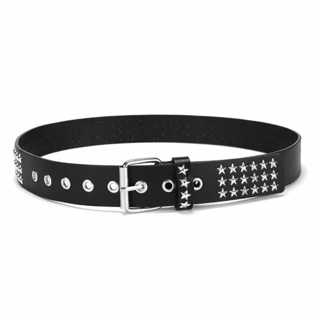 レディースベルト スタッズベルト ウエスタンベルト Y2Kロック メタル パンク ストリート リベット PU レザー 鋲 星 スクエア ビーズ リベット メンズ レディース ブラック 五角星 五芒星