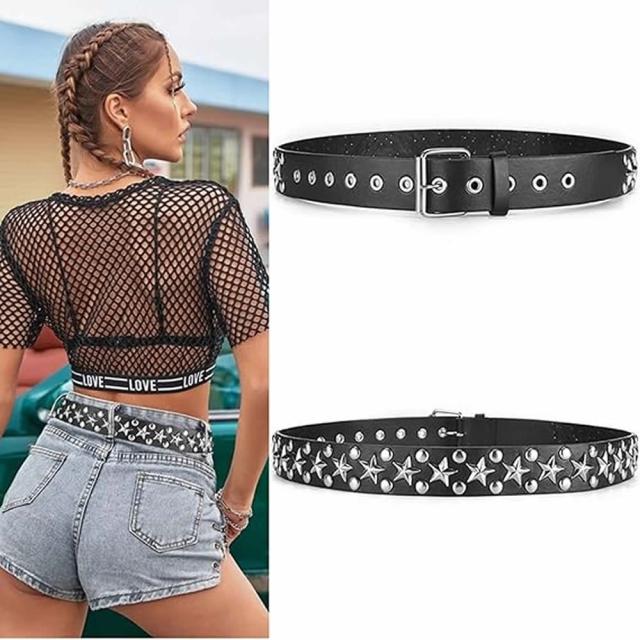 スタイリッシュなブラックカラー: Y2Kスタイルにぴったりの、ブラックのスタッズベルトです。