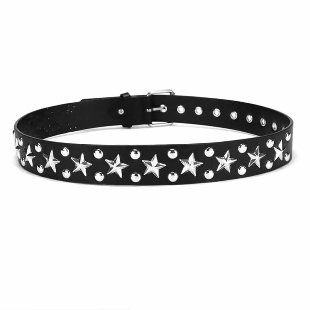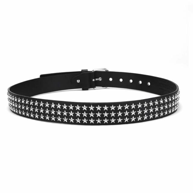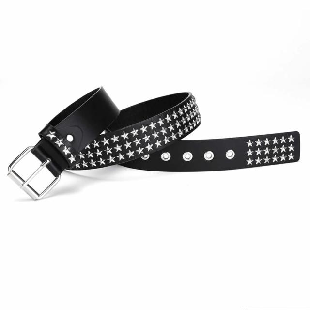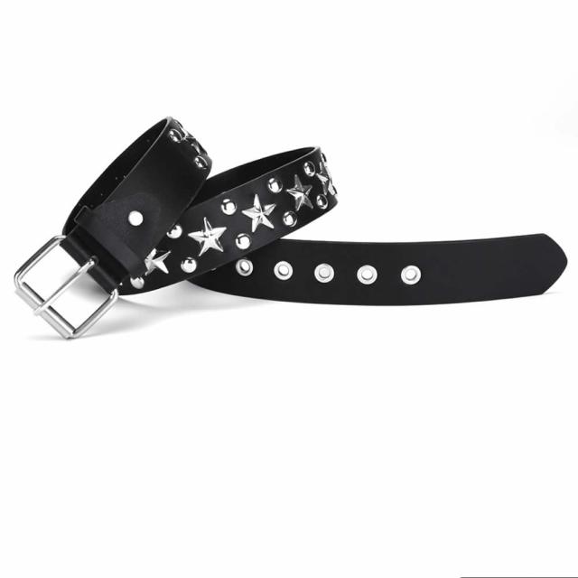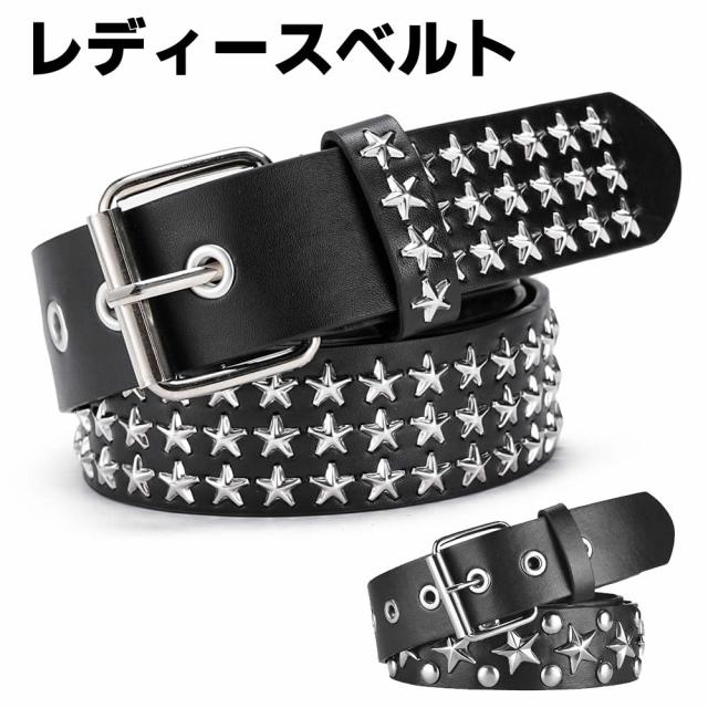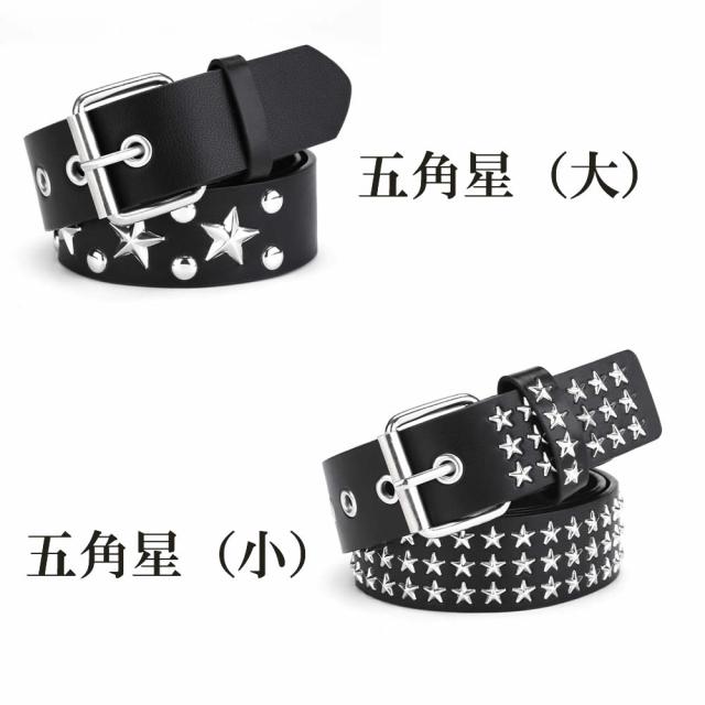 スタッズベルト ウエスタンベルト Y2Kロック メタル パンク ストリート リベット PU レザー 鋲 星 スクエア ビーズ リベット メンズ レディース ブラック