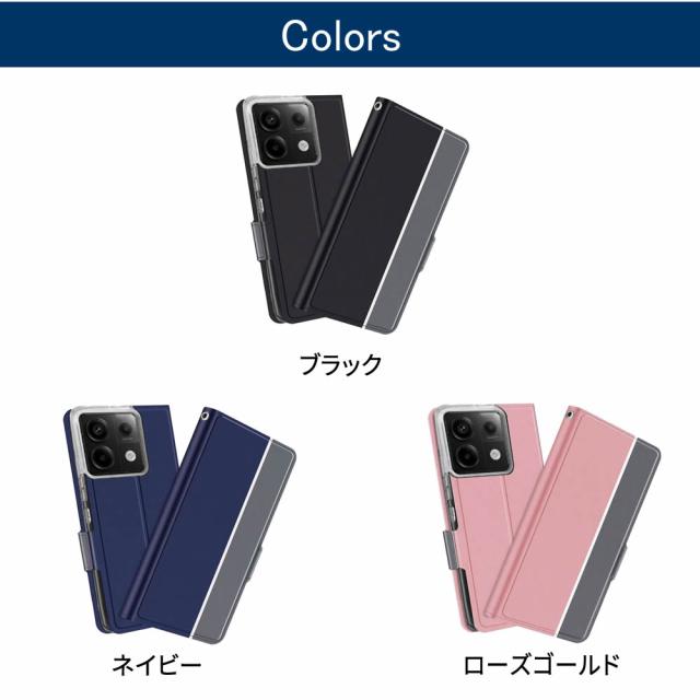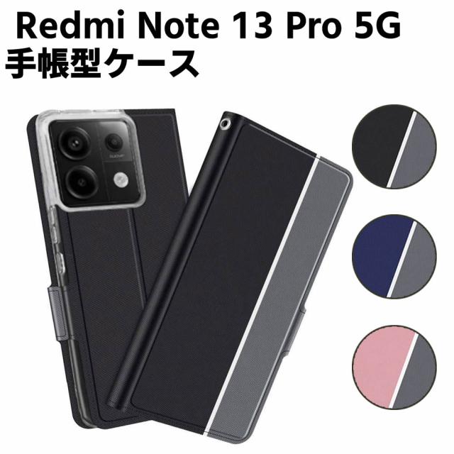 Redmi Note 13 Pro 5G ケース 手帳型ケース スマートフォンケース カバー マグネット ツートーンカラー ストラップ付き 定期入れ ポケット シンプル スマホケース スタンド機能 二つ折りケース シンプル スマホケース