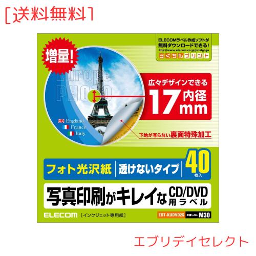 エレコム CD/DVDラベル 内径17mm 下地が透けない 光沢 40枚入 EDT-KUDVD2S