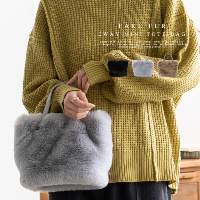 トートバッグ レディース 小さめ ファー バッグ 大人 軽量 ミニ 小さめ フェイクファー b6 実用的 ミニバッグ 小さいサイズ 2way ショルダーバッグ 手提げ 鞄 バック もふもふ おしゃれ nsb-30261z 【aroco/アロコ】 秋冬 秋バッグ プレゼント