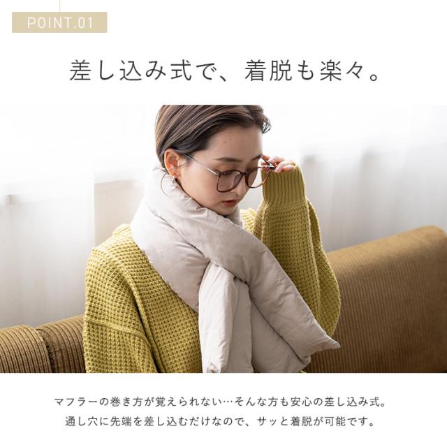 差し込み式で簡単に装着出来るダウンマフラー。
