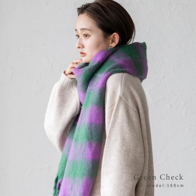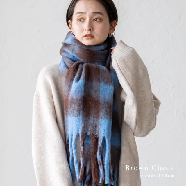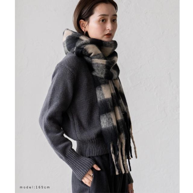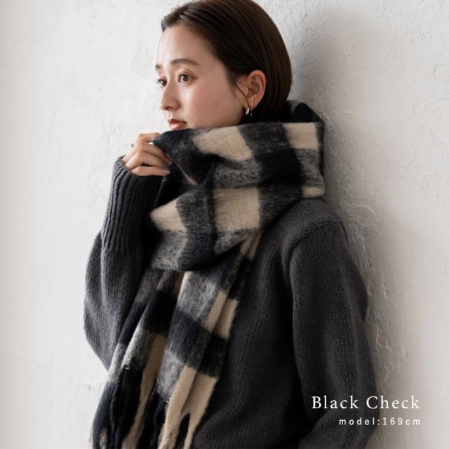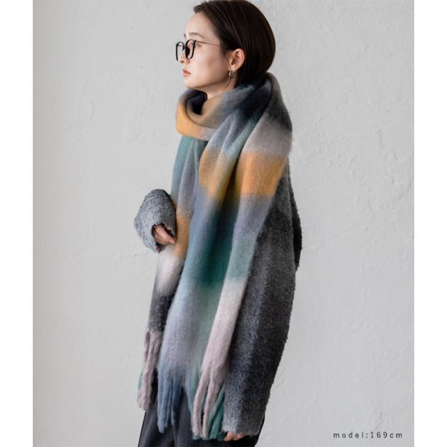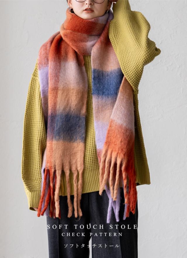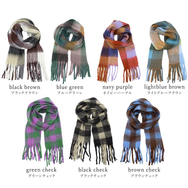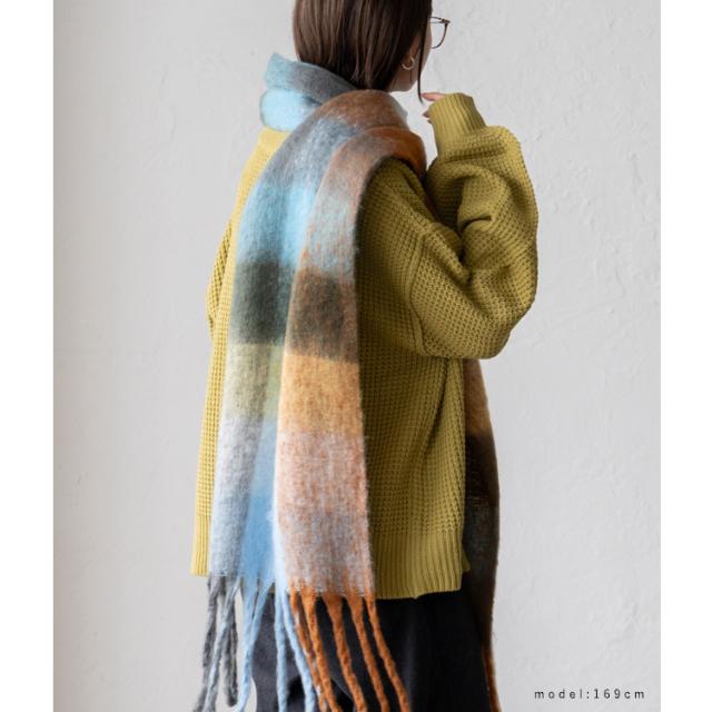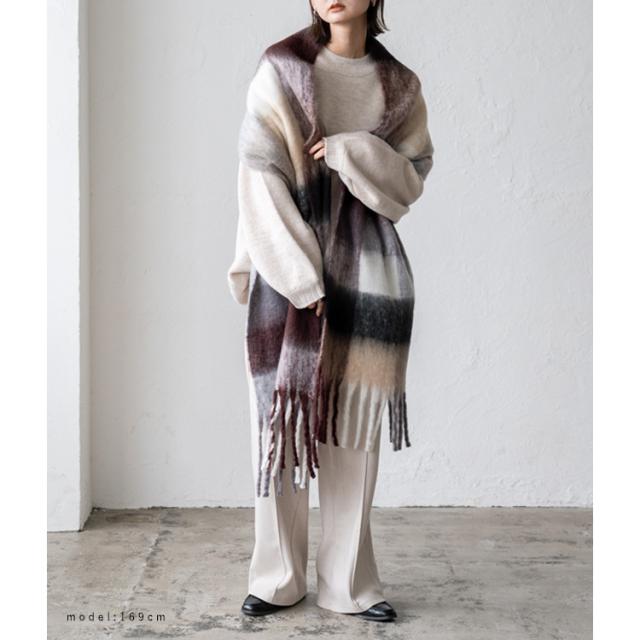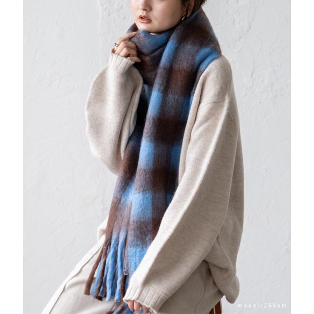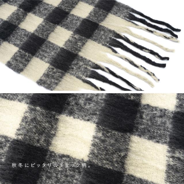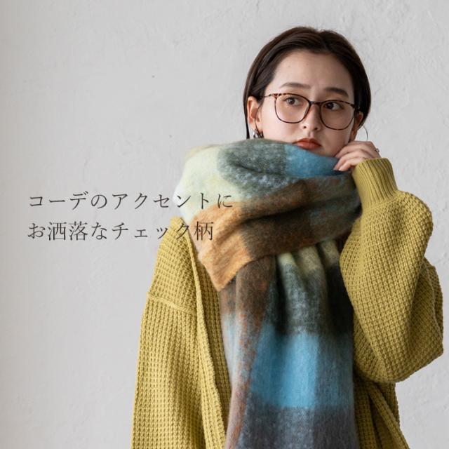 ボリューム チェック マフラー ストール 冬 レディース ロング ワイド チェック柄 大判 暖かい おしゃれ 小顔効果 長い 厚み 厚い ロングマフラー 仕事用 モヘア カジュアル 秋冬【メール便】nss-30264z プレゼント 実用的