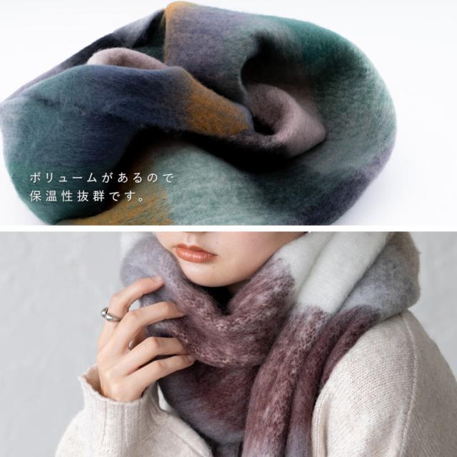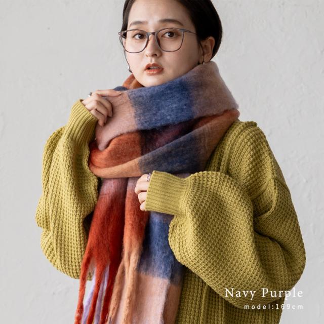 - ネイビーパープルを購入しました。画像通りでした。巻き方により色合いが代わり色々楽しめます。長さがあるのでミラノ巻きも楽々可愛く巻けます。もふもふなのでとても温かいです!ありがとうございました。