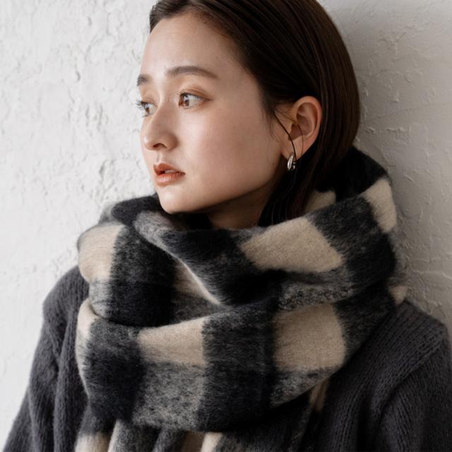 太めのフリンジと、首元に巻いたときのボリュームが可愛く小顔効果も。