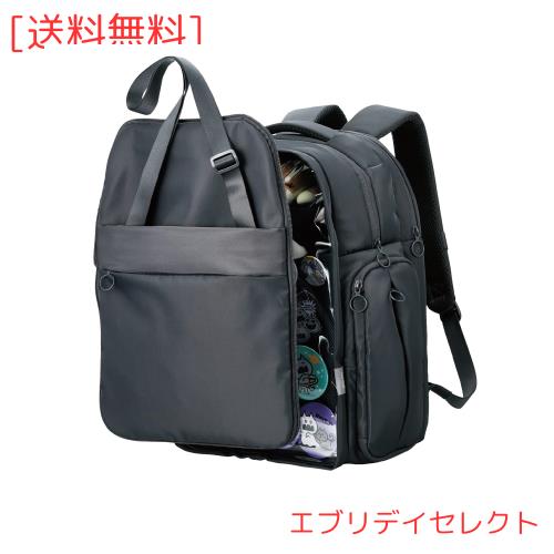 【 説明 】 ■あなただけの推し活を応援する、推しごとバックパックです。 ■日常のお出かけの際にも街に溶け込み、会場付近までの移動中にも活躍する「擬態モード」と、ぬいぐるみやバッジをアピールできる「推し活モード」を切り替えられます。 ■普段は隠せる大きな透明窓で、大好きな推しをバッチリアピールできます。 ■イベント時のグッズ購入はもちろん、ちょっとした遠征でも心配ない、たっぷり大容量です。 ■面ファスナーでしっかり固定できる、着脱式のディスプレイ用仕切りが付属しています。 ■ディスプレイ用仕切りには、ストラップや缶バッジを取り付けやすい粗目のメッシュ生地を採用しています。 ■ディスプレイ用仕切りを折りたたんで固定することで、簡易2気室構造にすることができ、ぬいぐるみなど厚みのあるグッズの配置にも対応します。 ■ディスプレイ用仕切りを取り外すことで、メイン気室の空間全体を見せることが可能。自由に内部を装飾できます。 ■フロントパーツの着脱により、「擬態モード」と「推し活モード」を切り替えることができます。 ■取り外したフロントパーツにはショルダーベルトが付いているので、サコッシュとして使えます。 ■サコッシュには便利な4つの小物ポケットがあり、イベント会場で荷物が多い際もお財布などをサッと出し入れできます。 ■ノートパソコンやタブレットなど、作業・鑑賞に便利なデジタル機器を整理して収納できる、独立したガジェット収納気室を備えています。 ■バッグを下ろさずに汗拭き用のタオルやドリンクなどを素早く取り出せる、ファスナー付きのサイドポケットを両側面に採用しています。 ■サイドポケットのファスナーを大きく開くことで、バッグを背負ったままメイン気室の荷物を出し入れできます。グッズ交換などの際もスムーズです。 ■メイン気室は、A4サイズのドキュメントケースの横入れに対応しています。戦利品の保護にも便利です。 ■背面には、折り畳み式の椅子や付属のレインカバーの収納に適した、大型のスリーブポケットを備えています。 ■背面のキャリーベルトによって、キャリーケースにバッグを固定して使用可能。遠征の際も使いやすい設計です。 ■ショルダーベルト部に、ICカードケースやカラビナの取付が可能なリングテープと、リング構造付きのアジャスターを備えています。 ■本体の表生地に、撥水加工を施しています。 ■専用のレインカバーが付属しています。大切な推しを急な雨から守れます。 ■※いずれも、内部への水の浸入をに防ぐものではありません。 ■15.6インチまでのノートパソコンを収納可能です。 ■自社環境認定基準を1つ以上満たし、『THINK ECOLOGY』マークを表示した製品です。 ■環境保全に取り組み、製品の包装容器が紙・ダンボール・ポリ袋のみで構成されている製品です。