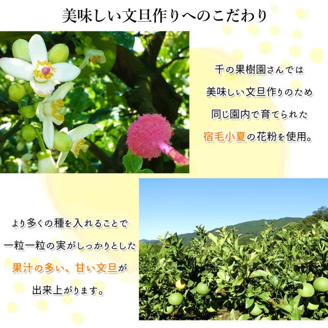 文旦は、爽やかな甘みとほのかな酸味が特徴の柑橘です。この味を追及するために「千の果樹園」さんは、5月から始まる受粉時期からこだわって栽培されています。