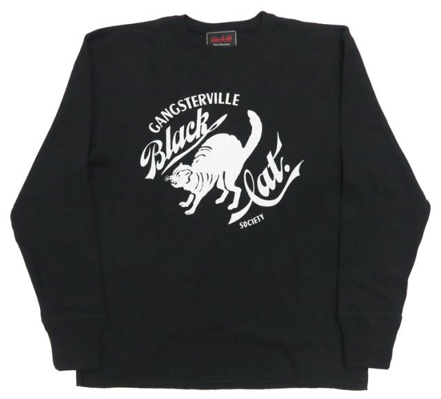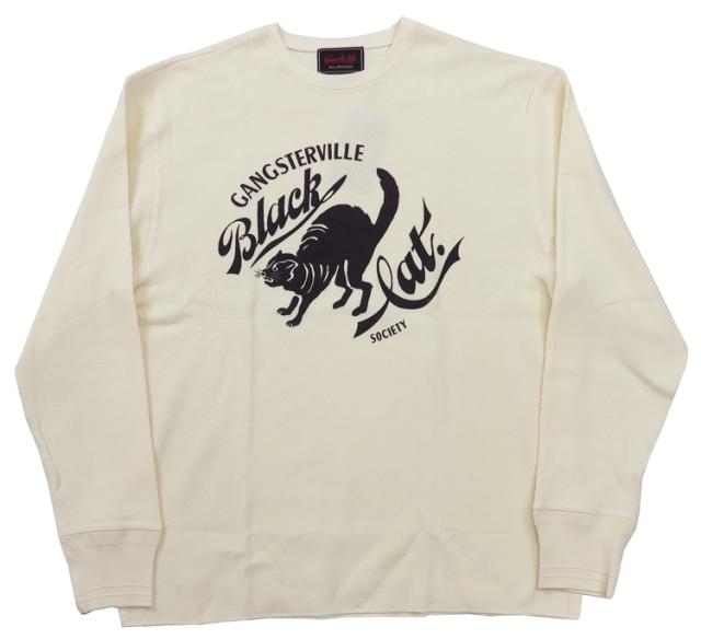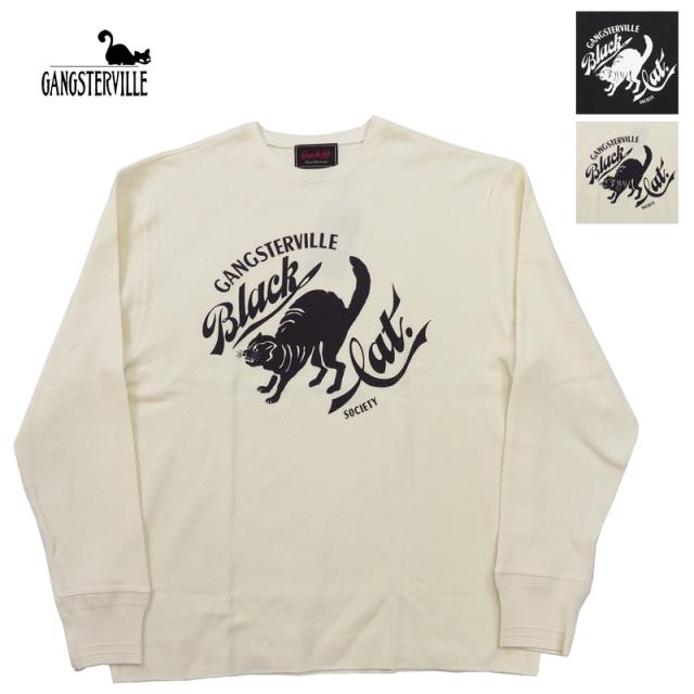 GANGSTERVILLE ギャングスタービル 長袖 クルーネック ワッフルTシャツ BLACK CAT SOCIETY GSV-24-AW-16 GLAD HAND グラッドハンド