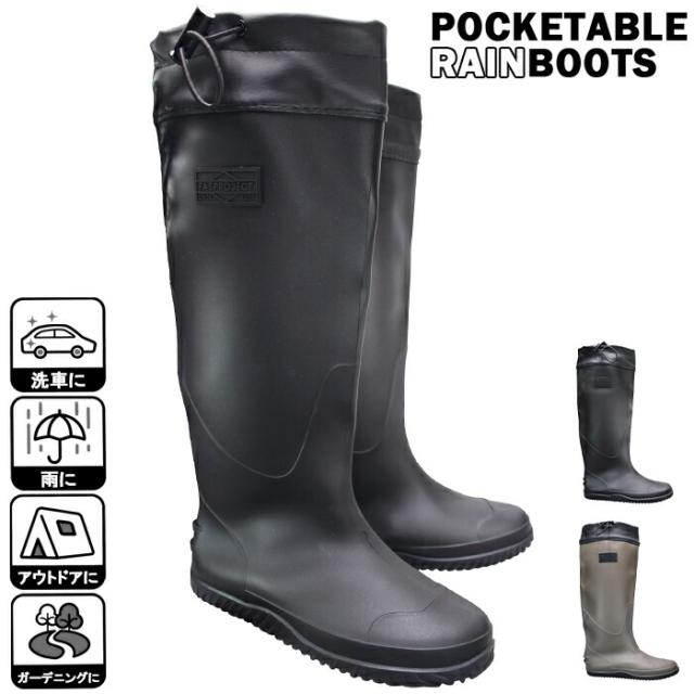 FASPROJECT 折りたたみレインブーツ GS30300 ブラック GS30330 グレージュ ポケッタブルレインブーツ ブラック Sサイズ〜3Lサイズ メンズ レディース 作業ブーツ 防水ブーツ ガーデニングブーツ アウトドア コンパクトブーツ シューズ 折りたためる 長靴
