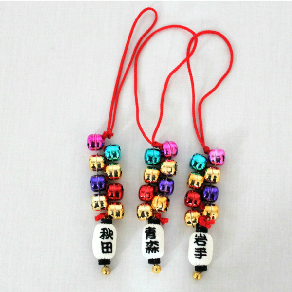 | 優しい鈴の音色、カラフルな鈴と提灯がゆらゆら揺れ祭り気分を盛り上げます。半天の帯や腹掛、たすきやカバンなどに付けるのがオススメです。 青森、秋田、岩手のお祭りに参加される際はもちろん、北東北のお土産にもおすすめです。 郷土愛感じます。 |