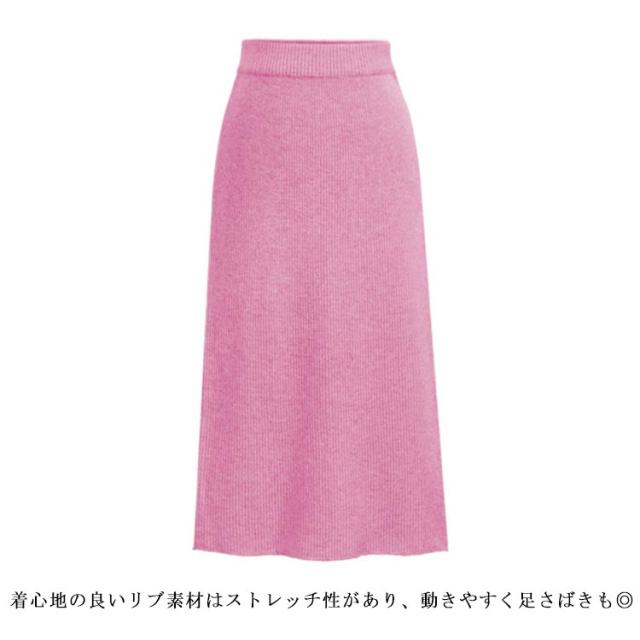 リブ ニット ロングスカート タイトスカート レディース ボトム ニットスカート ウエストゴム リブニット スリット バックスリット 細見え すっきり ストレッチ 体型カバー 楽ちん ゆったり リラックス ピンク ブルー ブラック ライトグレー ダークグレー