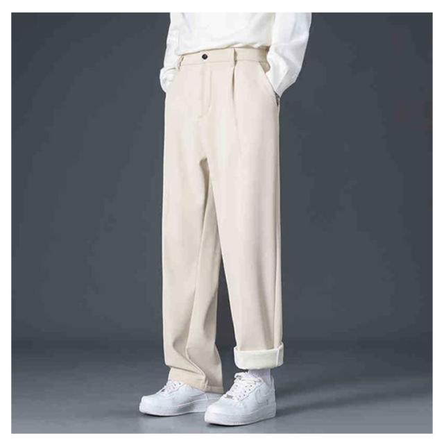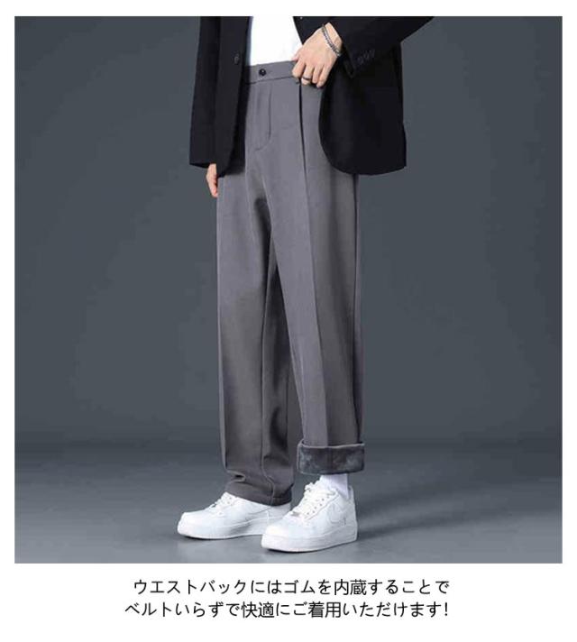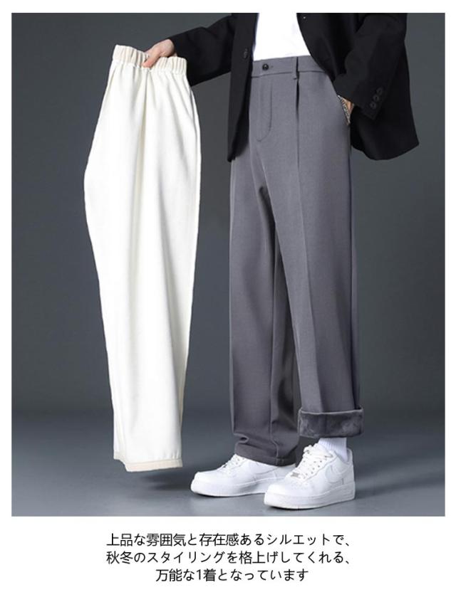 スラックス カジュアル ビジカジ ワイド スラックス ハイウエスト メンズ ワンタック センタープレス カジュアルパンツ ストレート 冬用 防寒 保温 暖かい 秋冬 紳士 後ろゴムウエスト 大きいサイズ スーツパンツ 暖パン 通勤 ズボン 裏起毛パンツ 白 黒