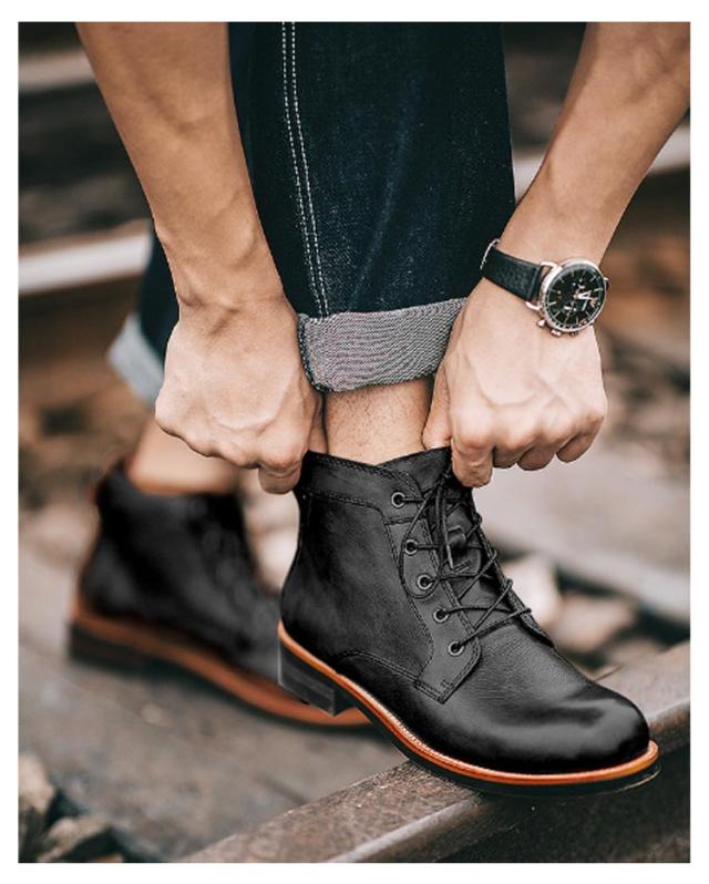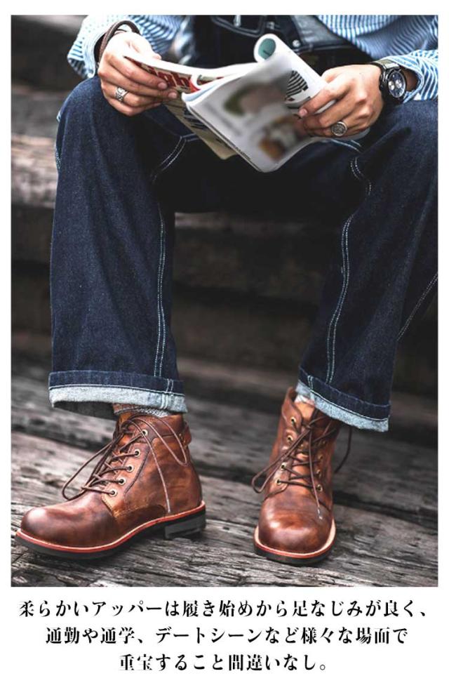 | 歩きやすく、今季トレンドなメンズレースアップブーツ。 PUレザーなのに本革のような質感でどんなボトムスとも相性抜群。 柔らかいアッパーは履き始めから足なじみが良く、通勤や通学、デートシーンなど様々な場面で重宝すること間違いなし。 水はけとグリップ性に優れた合成ソールは、濡れた路面でしっかりと地面をキャッチ。安心して歩ける一足。 チノパン、デニムなど大人きれいなスタイルを演出できるアイテム。 | |